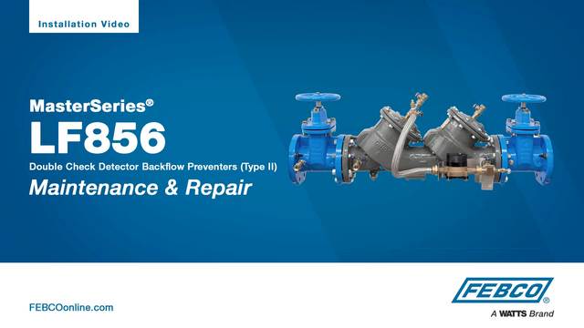 MasterSeries LF856 Lead Free* double check detector assemblies are designed to protect drinking water supplies from dangerous cross-connections in accordance with national plumbing codes and water authority requirements for non-health hazard service applications such as irrigation, fire line, or industrial processing. This assembly consists of a fused epoxy coated ductile iron body using ArmorTek® epoxy coating technology for advanced corrosion resistance. Maximum working pressure: 175 psi (12.1 bar).